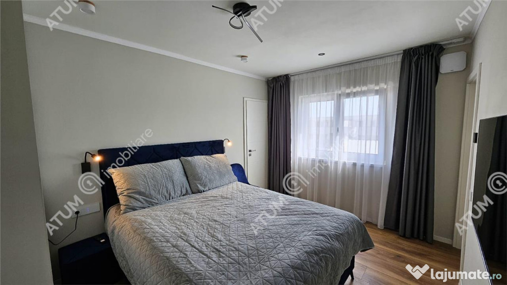 Va oferim spre inchiriere un penthouse de 50 mp utili terasa de 34 mp, curte proprie de 60 mp si 2 locuri de parcare, conceput pentru confort, siguranta si un stil de viata exclusivist, situat intr-o zona rezidentiala noua din Turnisor, Sibiu.Imobilul are regimul de inaltime P 2 etaje si a fost construit in anul 2020, beneficiind de locuri private de parcare.