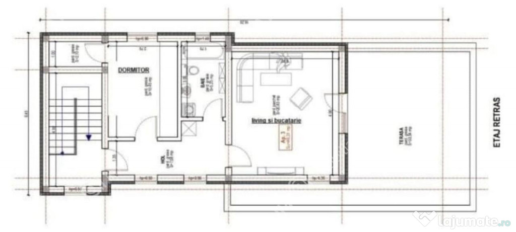 Compartimentarea penthouse-ului este astfel: living spatios cu bucataria open-space, dormitor, 2 bai moderne, terasa amenajara cu mobilier specific si jacuzzi.