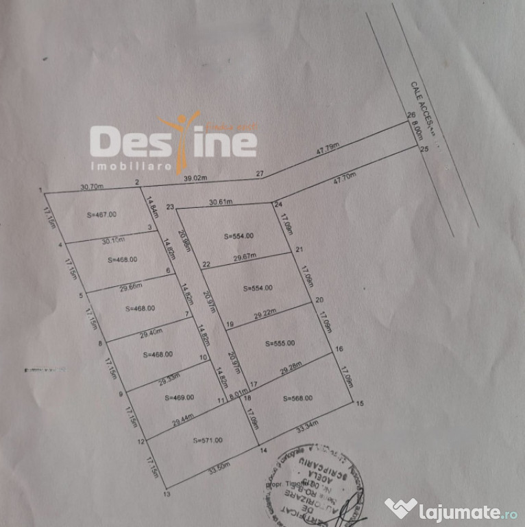 DESTINE IMOBILIARE vă propune spre vânzare mai multe parcele de teren situate în extravilanul zonei C ...