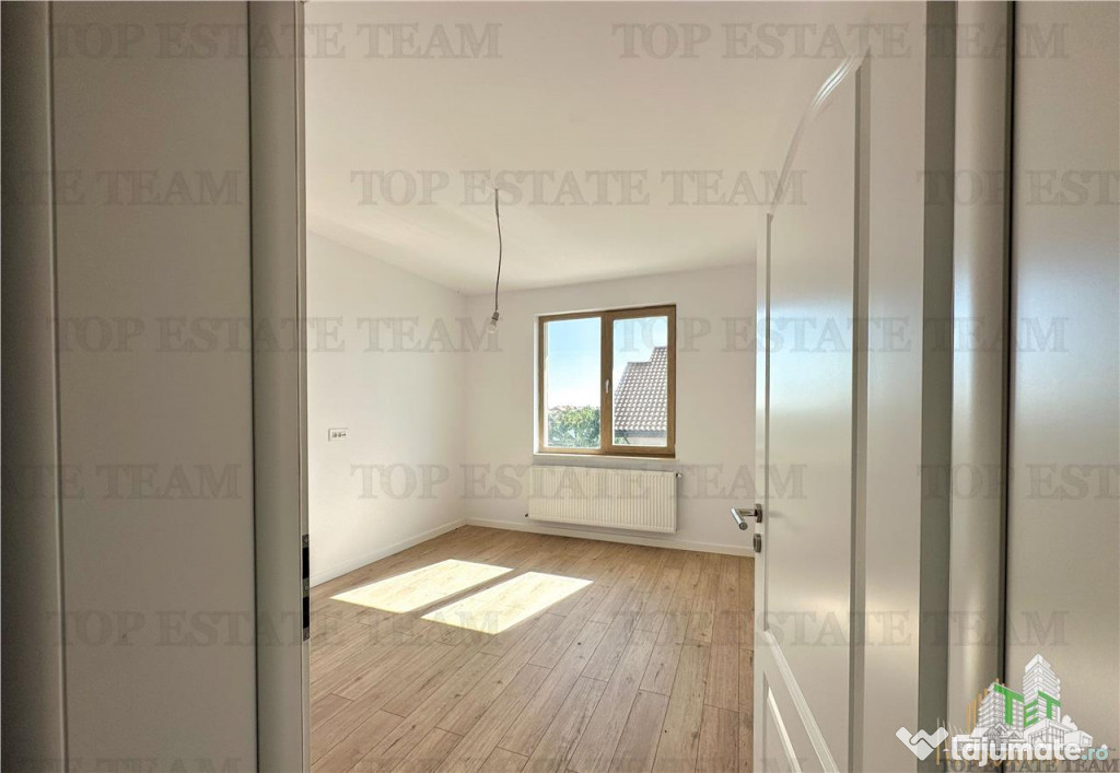 Compartimentare: living, bucatarie inchisa, hol, dormitor, baie de servici cu dus, camera tehnica, spatiu de depozitare, casa scarii. La etaj se afla un dormitor matrimonial cu baie proprie si alte 2 dormitoare cu dresinguri si baie pe hol. Pod inalt peste 2metri pentru depozitare.