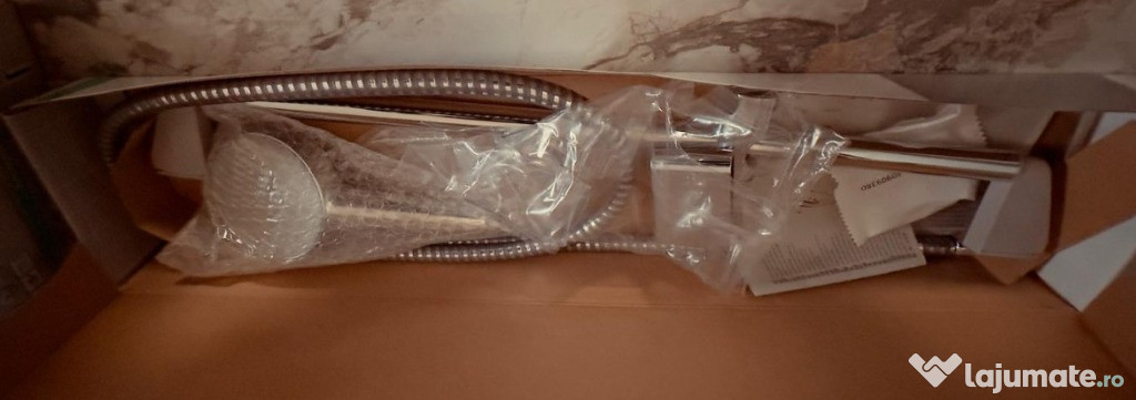 Robinet de duș/cadă nou, complet cu furtun și bară. Acesta este un accesoriu modern și funcțional pen ...