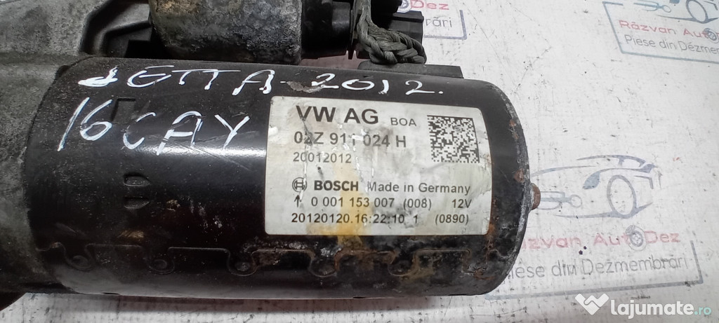 Electromotor Volkswagen Jetta 1.6 (cod motor: CAY) Motorina 2012. Cod(uri): 02Z911024H. Piesele comercializate sunt originale, provenite din dezmembrari. Dispunem de o gama larga de piese multimarca. Piesele sunt verificate inainte de a fi puse spre vanzare. In caz de neconformitate piesa se poate returna. Va rugam sa verificati disponibilitatea pieselor telefonic. Trimitem in tara prin curier.Marcă: Volkswagen