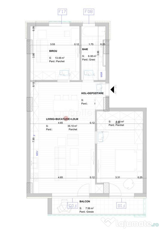 - Dormitorul, detine acces la terasa comuna cu zona de living;