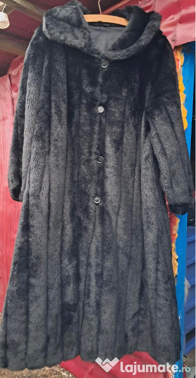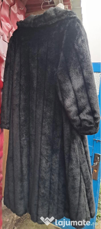 Palton lung din blană naturală de nurcă, culoare negru, model clasic. Lungime sub genunchi, foarte că ...
