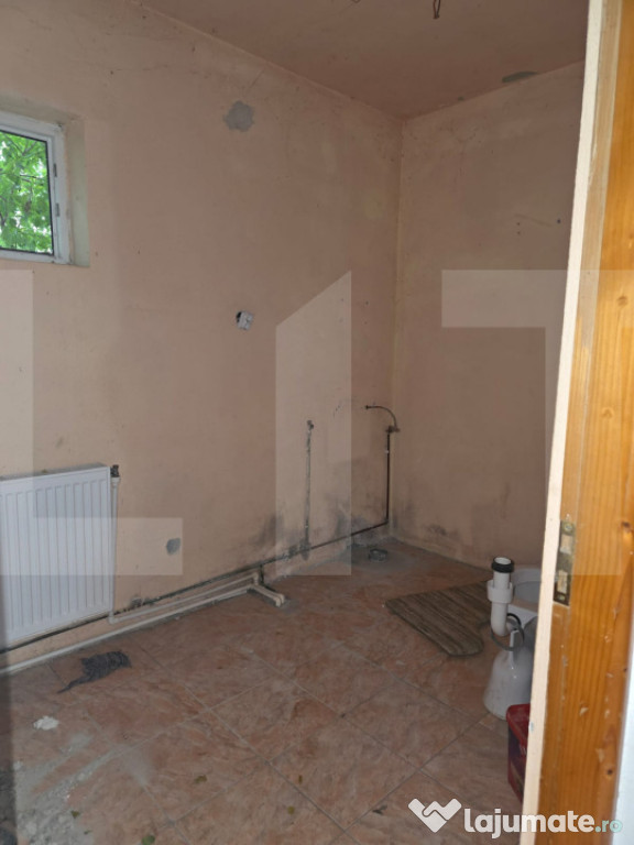 Utilități: apă, curent, canalizare, cameră pentru centrală, încălzire pe lemne.