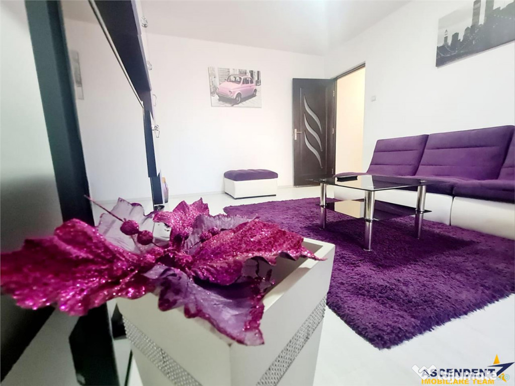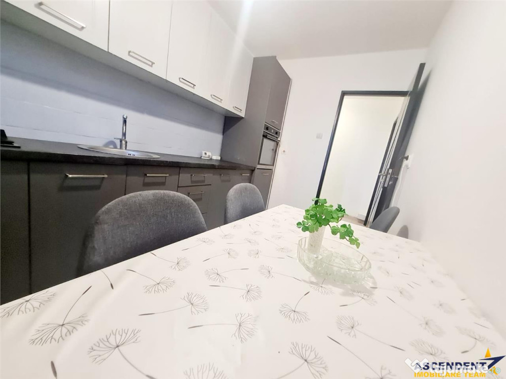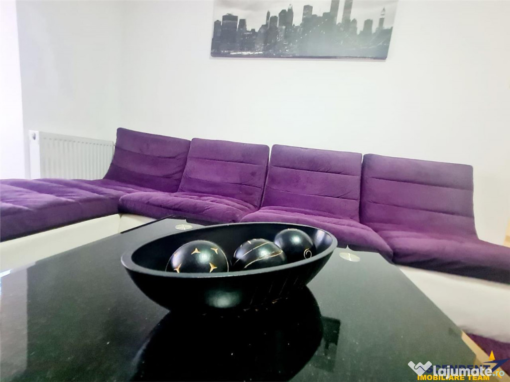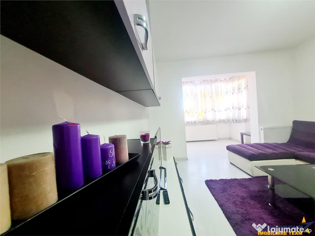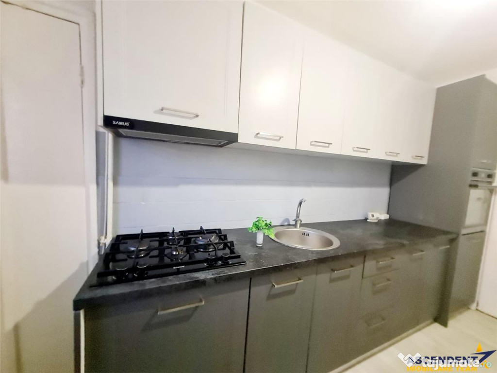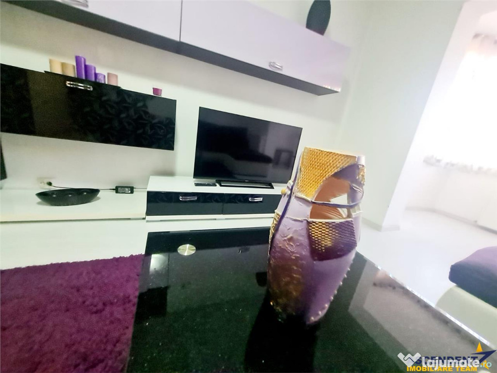 - living modern cu iesire in balcon, bucatarie echipata complet cu plita, cuptor, hota, frigider, 2 holuri generoase, doua dormitoare cu pat matrimonial, baie cu aerisire naturala si cada, precum si baie de servici.