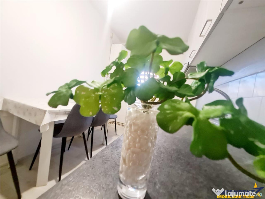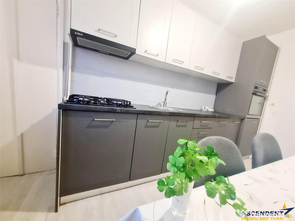 Imobilul se prezinta mobilat si utilat, cu toate imbunatatirile incluse, centrala termica proprie, gresie si faianta, parchet laminat, ferestre cu geam termopan etc