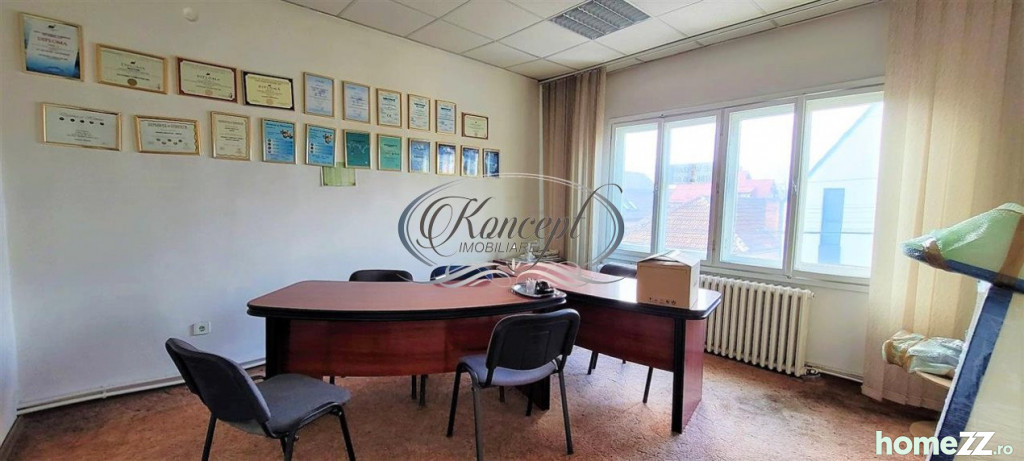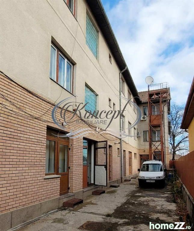 Koncept Imobiliare va ofera spre vanzare o cladire administrativa in cartierul Dambul Rotund, in zona strazii Maramuresului. Aceasta are regim de inaltime D+P+2+Pod, suprafata utila totala de 589 mp, compartimentata dupa cum urmeaza: Demisol - camera tehnica, beci si hol ( 49 mp ); Parter - magazin, 2 spatii de productie, 2 spatii de depozitare, 2 grupuri sanitare si casa scarii; Etaj 1 - 2 incaperi mari recompartimentate cu rigips in mai multe birouri, birou administrativ, bucatarie, 2 grupuri sanitare; Etaj 2 - 6 birouri, grup sanitar si hol. Cladirea dispune de lift pentru marfa, curent trifazat si se preateaza pentru mai multe activitati comerciale sau productie. Vanzarea se face de pe persoana juridica iar la pretul afisat se adauga TVA de 19%. Pentru detalii complete, pentru programarea unei vizionari sau pentru a afla oferta noastra completa nu ezitati sa ne contactati telefonic, prin e-mail sau la sediul agentiei noastre, pe str. Aviator Badescu nr. 19, Cluj Napoca.Id intern: P16419