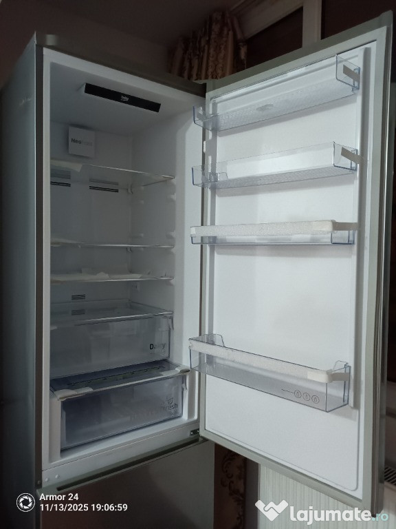Vând combină frigorifică Beko utilizată cu 1000 lei.Combina frigorifică Beko funcționează foarte bine.Ușa de sus de la Combina frigorifică Beko este puțin zgâriată și puțin turtită.Ușa de jos de la congelator de la combina frigorifică Beko este puțin zgâriată.Combina frigorifica BEKO RCNA406E40ZXBN, NeoFrost, 362 l, H 202.5 cm, Clasa E, argintiuCod CBFRCNA406E4XBN /. Specificații Clasa climatica SN, T