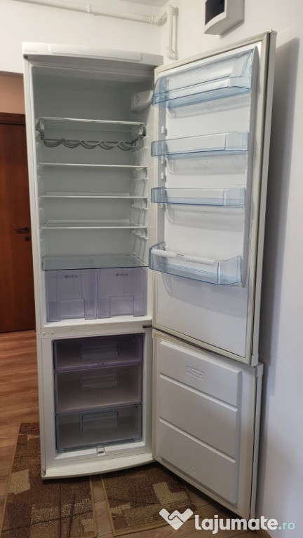 Vând combină frigorifică marca Electrolux, înaltă de 201 cm. Are 5 rafturi din sticlă și un suport sp ...