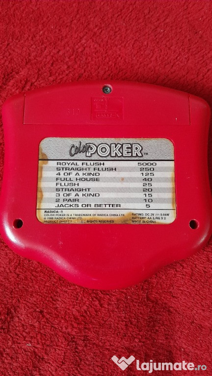 Consola a fost achizitionata din strainatate. Este functionala si necesita 2 baterii AA. Seria aceasta a fost produsa de catre RADICA in anul 1999. Perfecta pentru colectionari de console retro si pentru relaxare in timpul liber.Anuntul Vand consola poker color de mana RADICA este adaugat de pe LaJumate.ro.