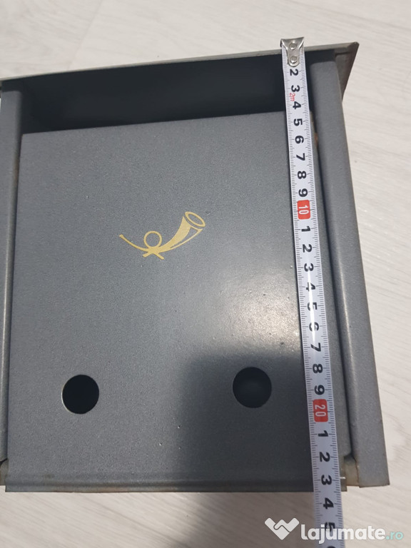 Cutie poștală gri de dimensiuni standard, în stare de utilizare. A fost folosita si prezinta umele ur ...