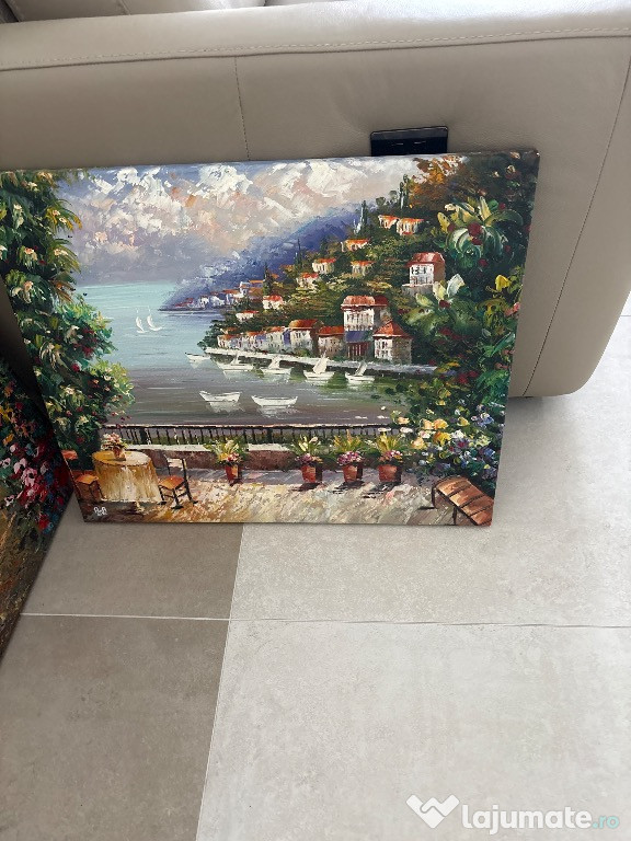 2 tablouri cu peisaj mediteranean executate în tehnica cuțit, rama lemn, superbe.Dimensiuni 90/60 700 Ron , 60/50 500 Ron