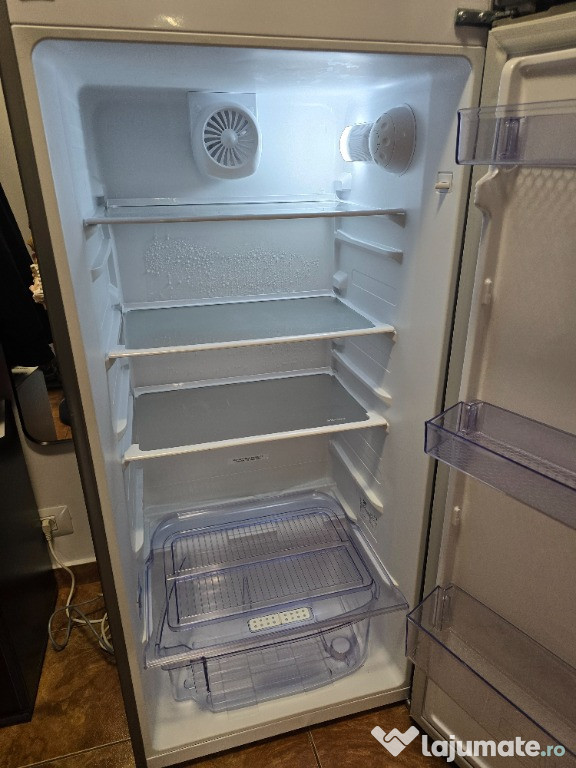 Vand frigider cu doua usi Beko RDSA310M30XBN, 306 l, Clasa F, Cooling Fan, Safety Glass, H 175 cm, ArgintiuFrigiderul este in stare perfecta, fara zgarieturi si lovituri. Achizitionat in Aprilie 2022, dar a fost folosit doar cateva luni in perioada verii.
