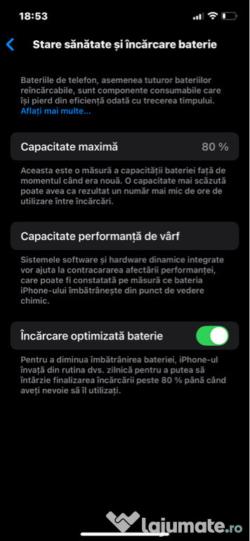 Sănătate baterie 80%