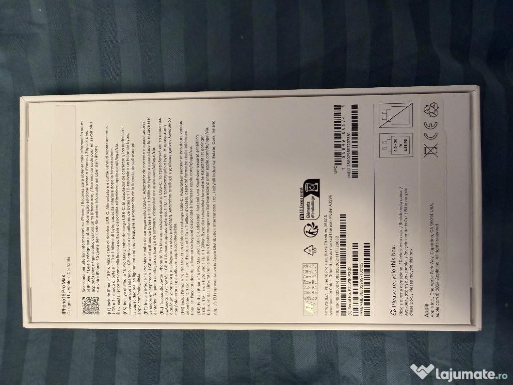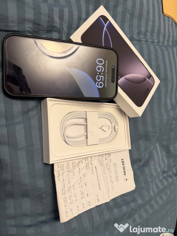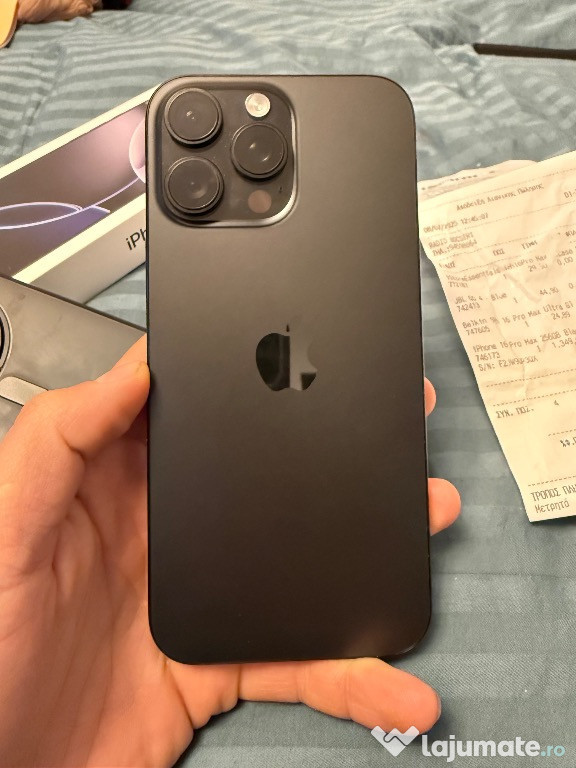 Vand iphone 16 pro max Capacitate 256 GB Stare baterie 100% Telefonul nu prezintă zgârieturi sau defe ...