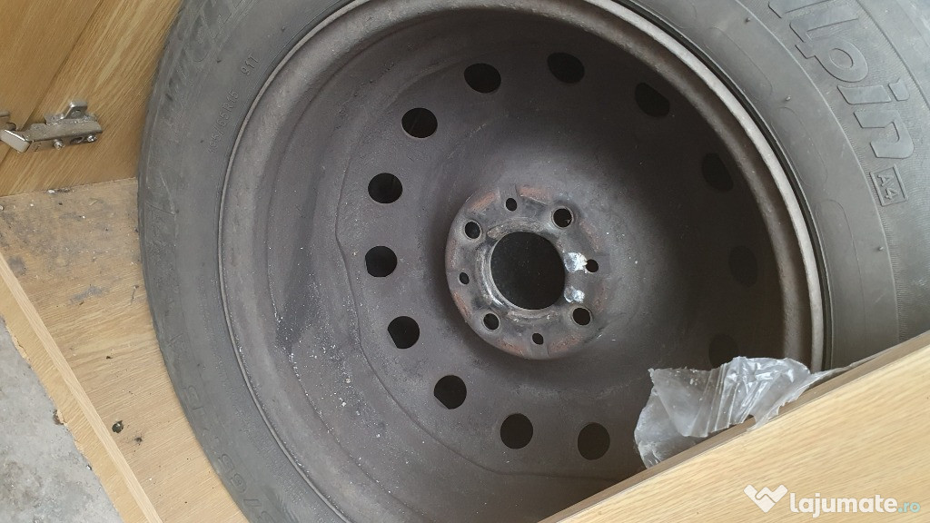 Vând roți complete ( jante tablă 15", distanță între prezoane 5*100 ET35+ anvelope iarnă M+S Michelin ...