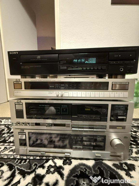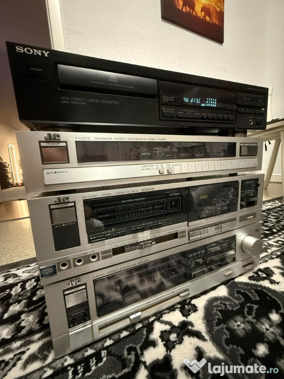 Vând sistem audio vintage complet JVC cu rack inclus ideal pentru colecționari sau pasionați de sun ...