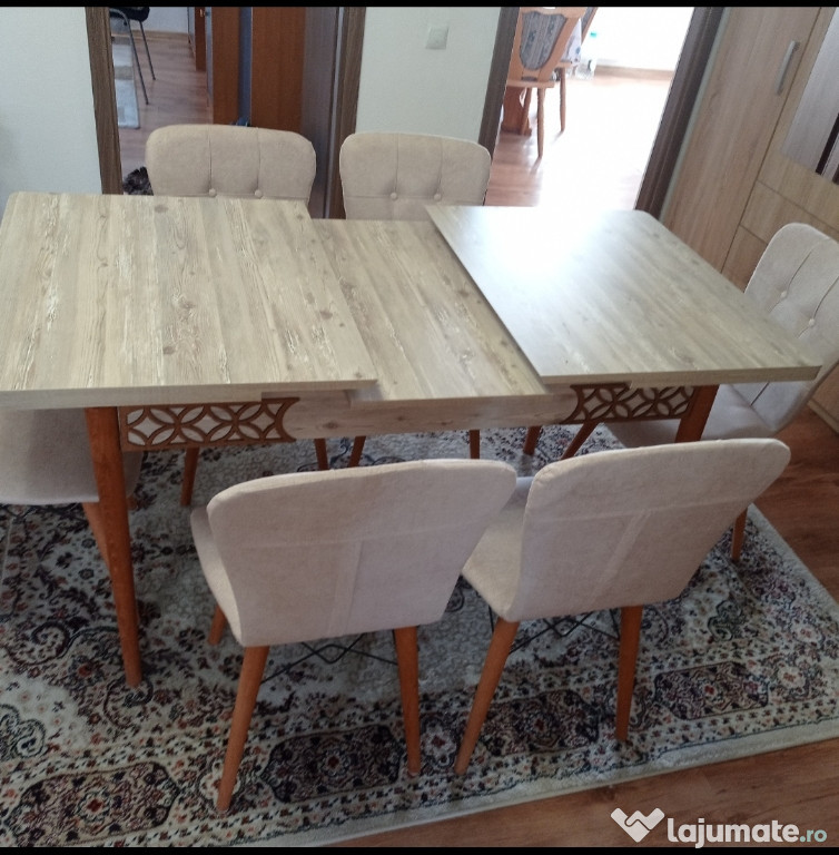 Vând masă extensibilă cu scaune nou nouță nefolosită, preț de nouă 1550 lei. ...