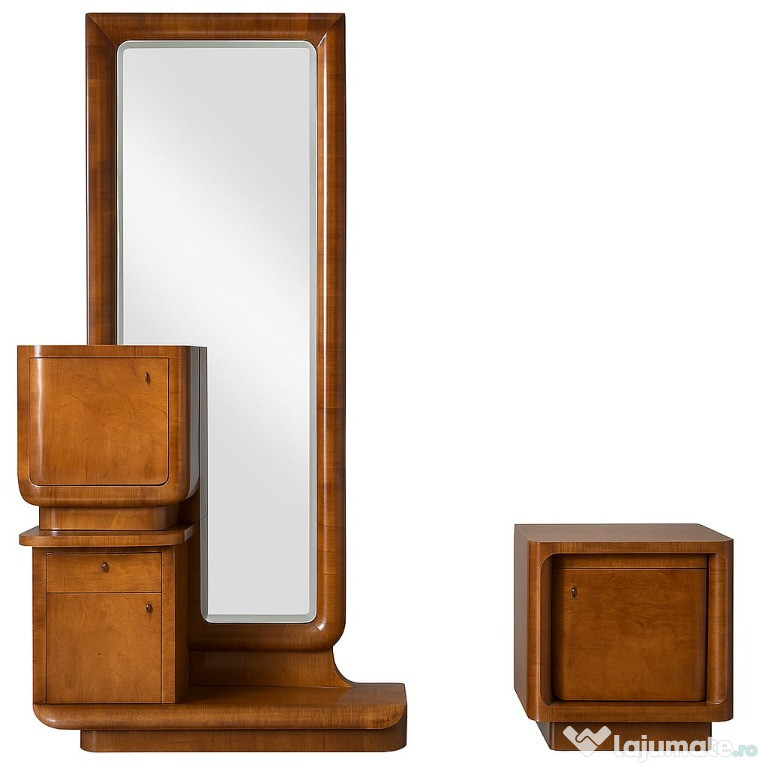 Vand mobila veche pentru dormitor formata din: un sifonier un pat de mijloc doua noptiere si oglinda ...