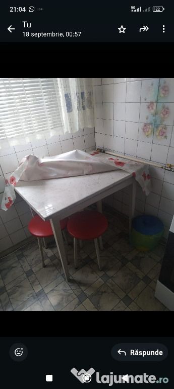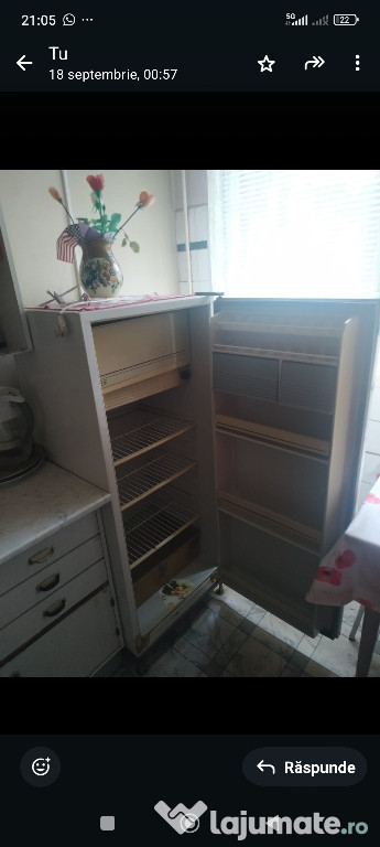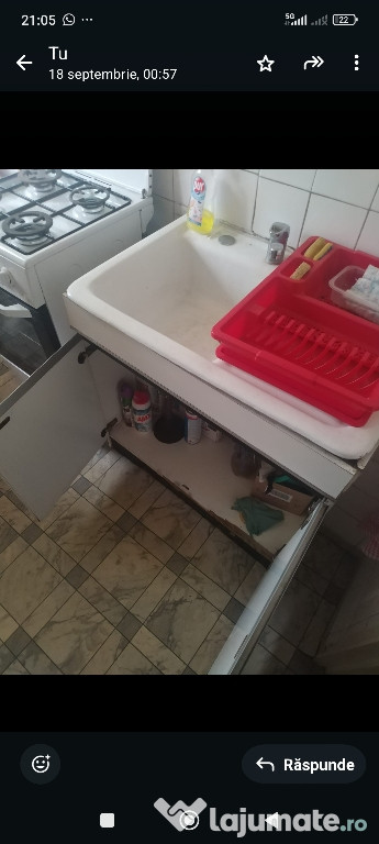vând mobilier de bucătărie care cuprinde dulap de bucătărie masă scaune dulap pentru chiuvetă frigiderAnuntul Vând mobilier de bucătărie este adaugat de pe LaJumate.ro.