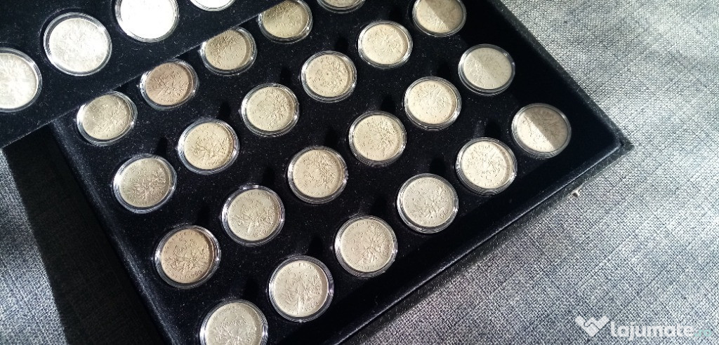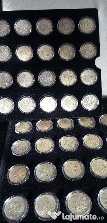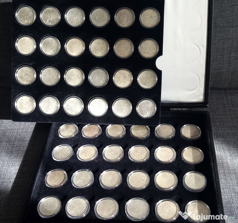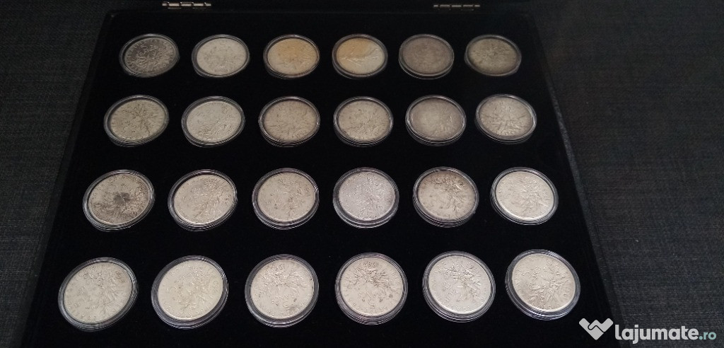 Vand lot monede din argint - 2900 de leiLot de 48 de bucati + CADOU cutie speciala de pastrare, exterior piele ecologica neagra, interior burete capitonat + imitatie catifea neagra, doua tavi.