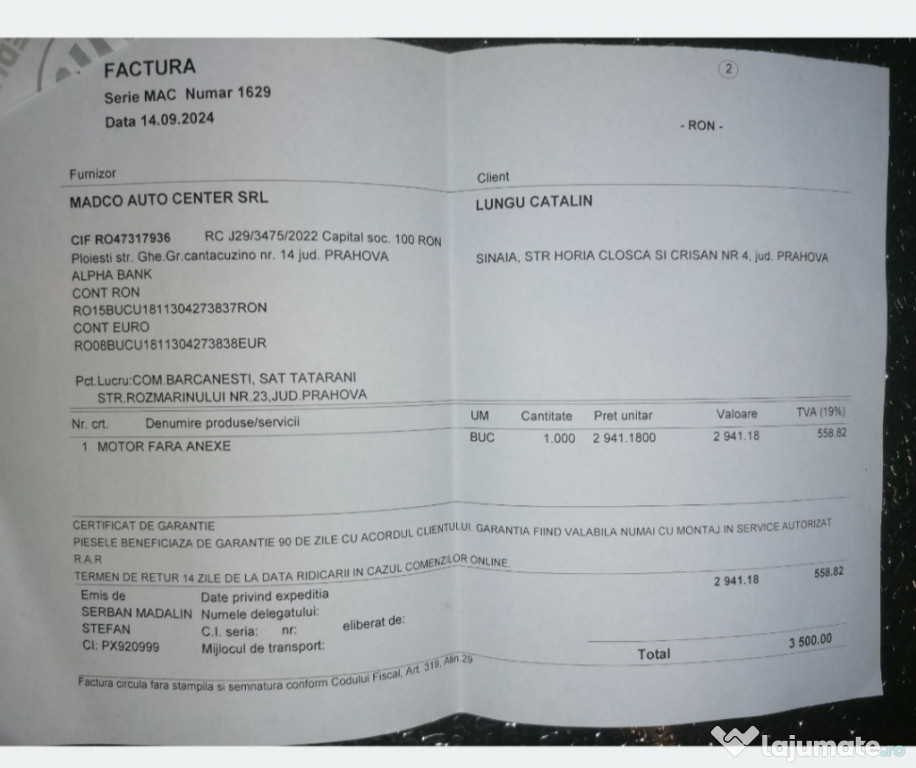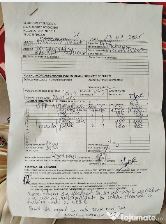 - Motor schimbat cu accesorii noi,turbina schimbata in garanție si filtru de particule curățat.