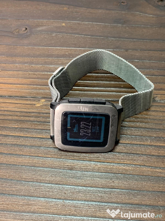 Vând Pebble Time, un smartwatch clasic cu e-paper color și autonomie bună. Ceasul are câteva zgârieturi pe carcasa / ecran (vedeți pozele), dar funcționează perfect. Pe lângă ceas, ofer și o brățară metalică magnetică (stil mesh), foarte elegantă și rezistentă.Specificații (pe scurt):