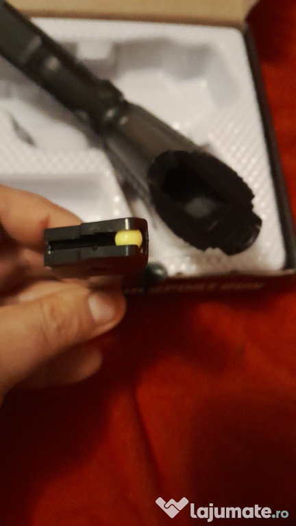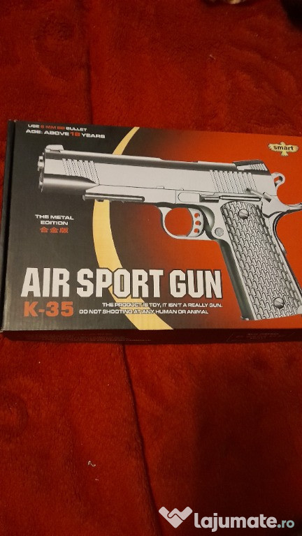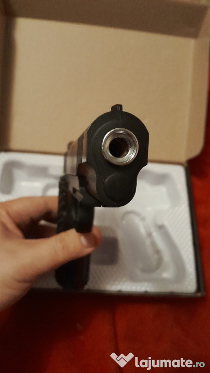 L-am cumparat in urma cu cativa ani, dar nu a fost folosit foarte mult. Trage cu bile de plastic. Perfect pentru o competitie cu prietenii sau pentru a trage la tinta. Prezinta un mic defect estetic pe partea superioara, dar nu ii este afectata functionalitatea. Carcasa este metalica.Anuntul Vand pistol negru airsoft cu bile de plastic este adaugat de pe LaJumate.ro.