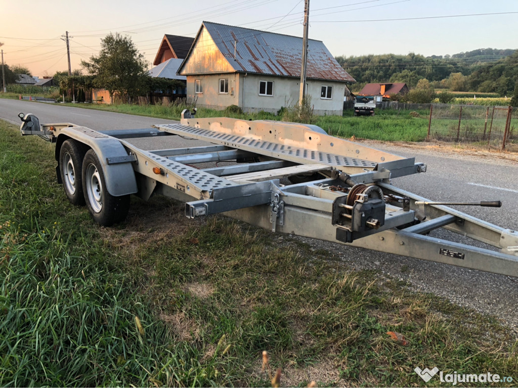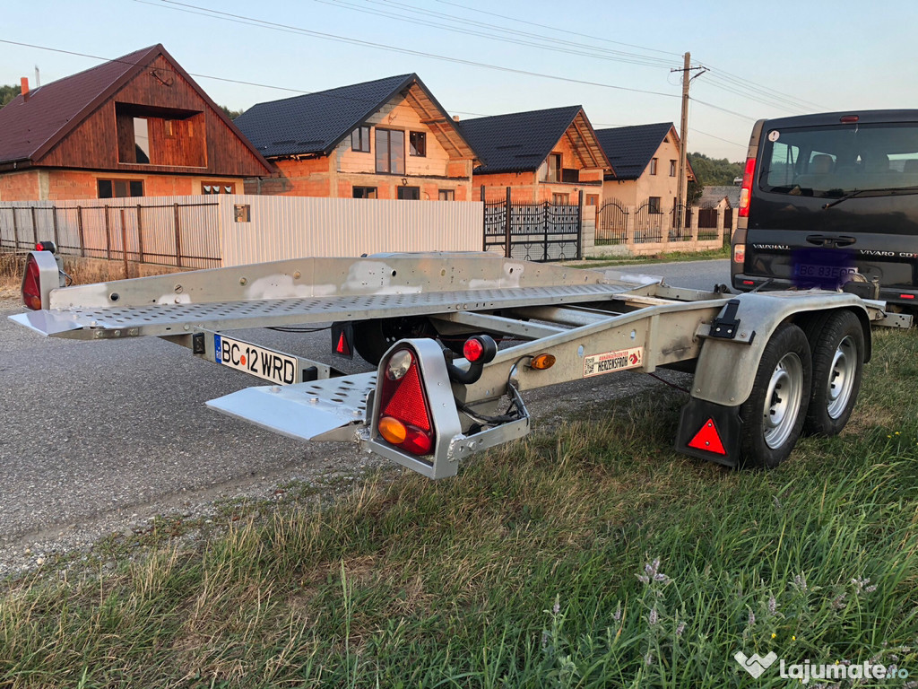 Remorca acoperita cu prelata. Ideala pt tractare auto. Dotata cu rampe si troliu. Masa max 2800 kg. L ...