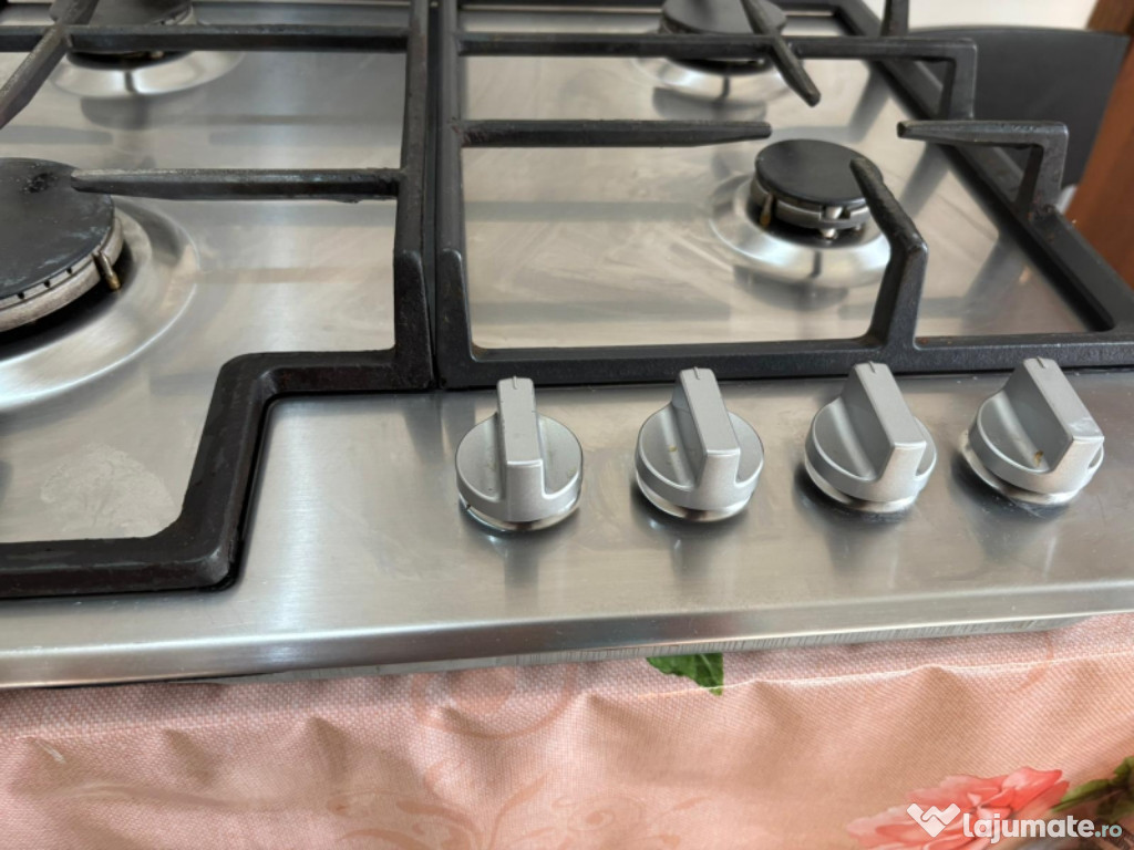Vand la 350 lei plita Zanussi - seria ZGG624, 4 arzatoare, din inox, 4 butoane pe partea frontala-dre ...