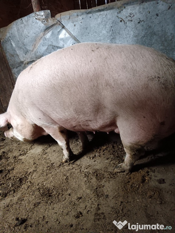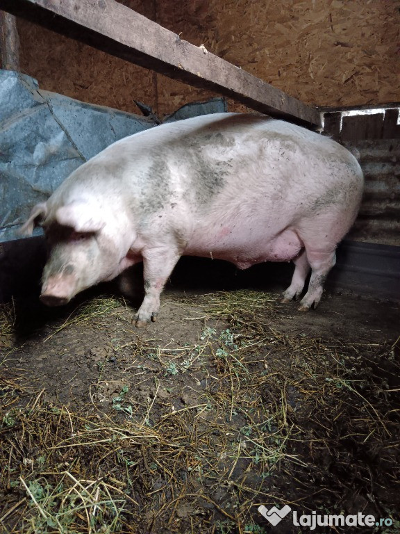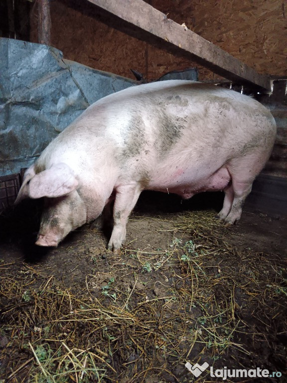 Vand porc Landrace, greutate aproximativa 340 kg, 14 lei in viu pe cantar sau pret “la ochi”, 4500 le ...