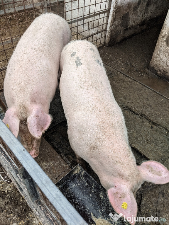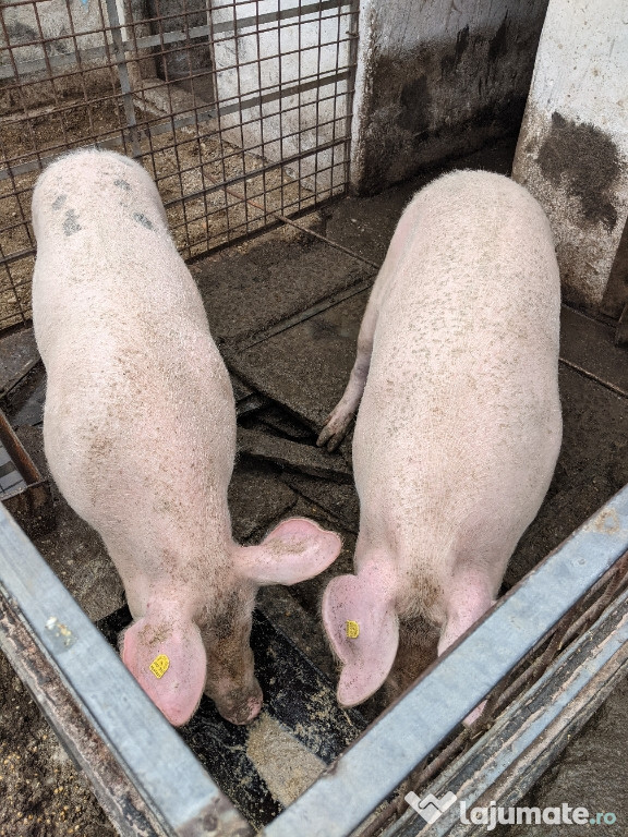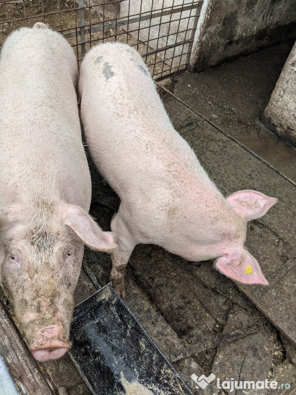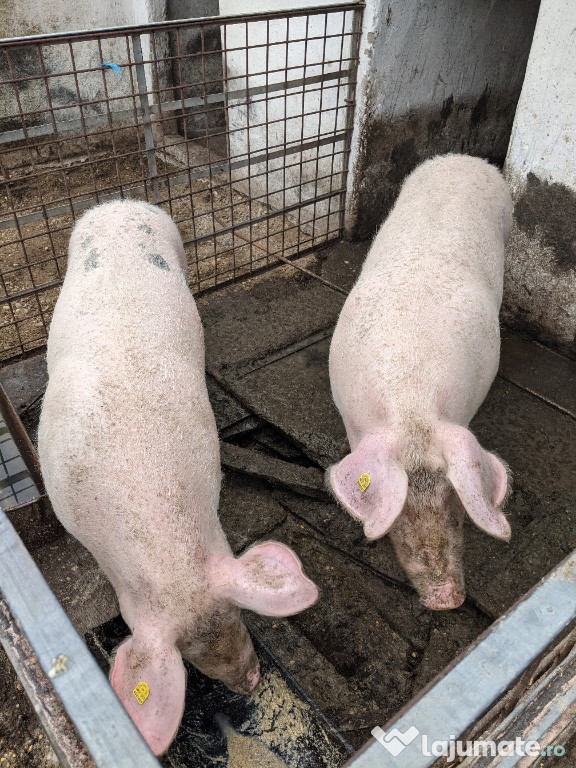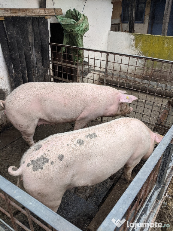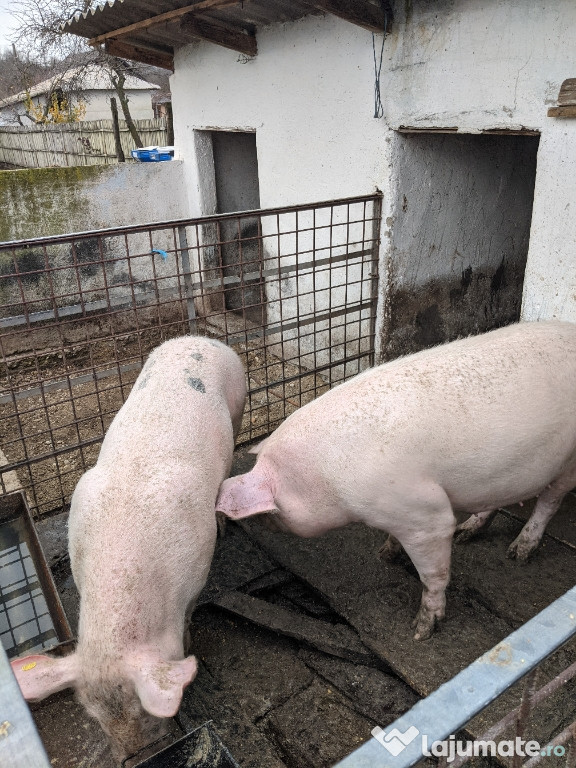 Vând la alegere doi porci rasă de carne Marele Alb, din patru, pentru Crăciun.Sunt doi porci și două ...