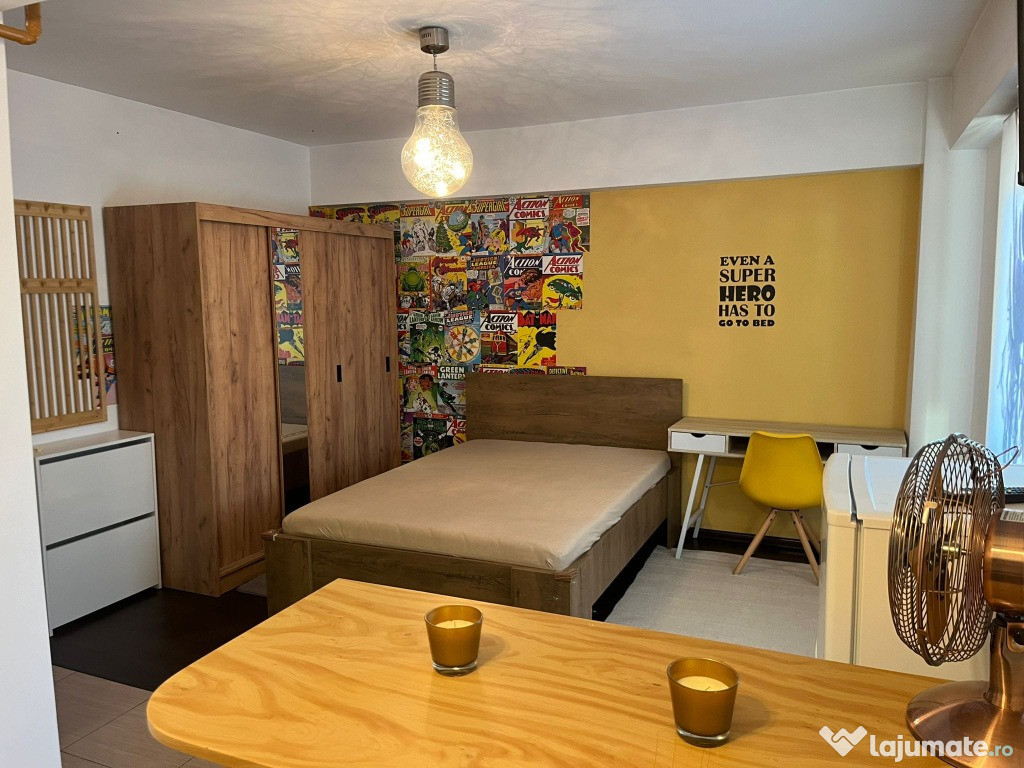 DHD Imobiliare vă propune spre închiriere o garsonieră modernă, situată langa Palas Campus, într-un bloc nou.Locuința se află la parter și reprezintă prima închiriere. Este complet mobilată și utilată, toate piesele de mobilier și electrocasnicele fiind noi. Garsoniera dispune de centrală termică proprie și oferă un nivel ridicat de confort.