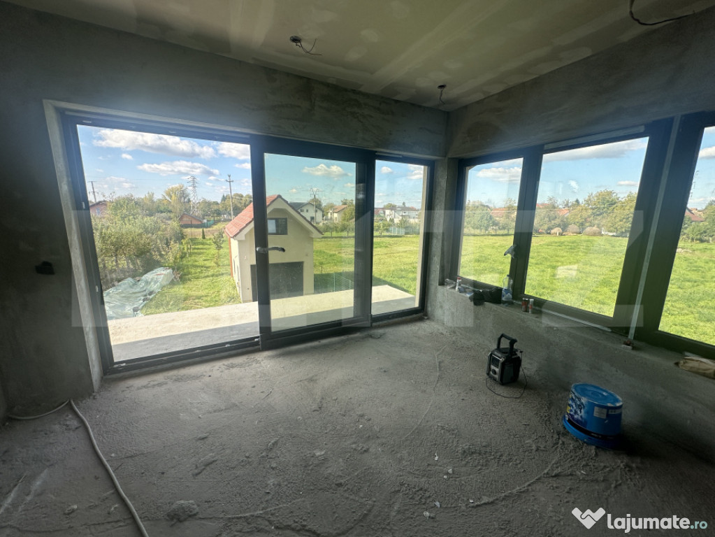 Ferestrele sunt termopan marca Salamander, oferind o bună izolare termică și fonică, iar întreaga casă este izolată cu polistiren de 12 cm, ceea ce contribuie semnificativ la eficiența energetică a locuinței.