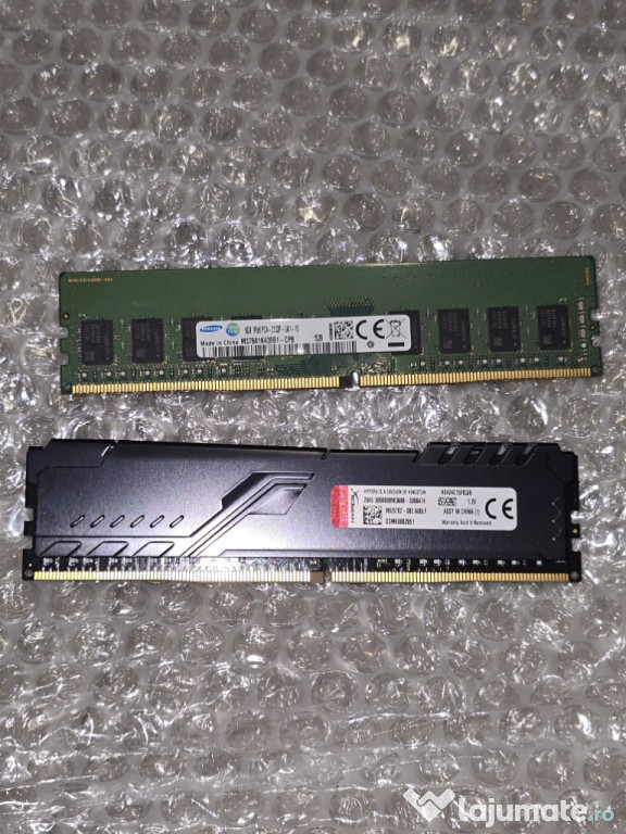 Memorii RAM 8+8 GB configurate în canal dublu.Nu sunt de acelasi fel pentru ca cea verde a venit cu pc-ul, cea fury e de pe emag. Nu e problema ca sunt diferite,eu asa le-am folosit mult timp, doar ca va rula la viteza cea mai mica dintre cele doua (care va fi cea verde). Se pot vinde si separat daca doriti doar una dintre ele.
