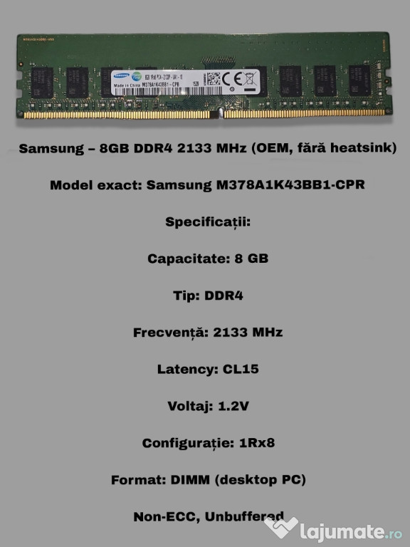 Samsung – 8GB DDR4 2133 MHz (OEM, fără heatsink)