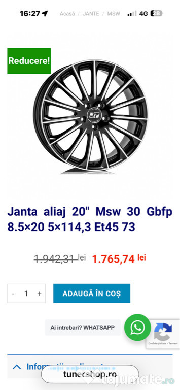 Vand roți complete iarna 275/45R20 jante MSW negru/argintiu