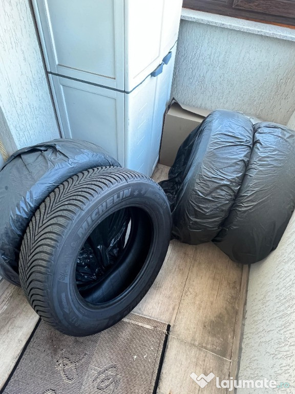 Vand set 4 anvelope iarna Michelin Alpin 5, marime 215/65/ R17 103H, foarte putin folosite - arata si se prezinta ca noi, fara urme de uzura sau zgarieturi, accept orice verificari. Sunt cumparate de noi de pe site-ul Autobon. DOT 43/22 la toate, fabricate in Italia toate 4. Ridicare din Bucuresti sector 1.Pret 550 lei o bucata, respectiv 2000 lei setul de 4 (reducere 200 lei).