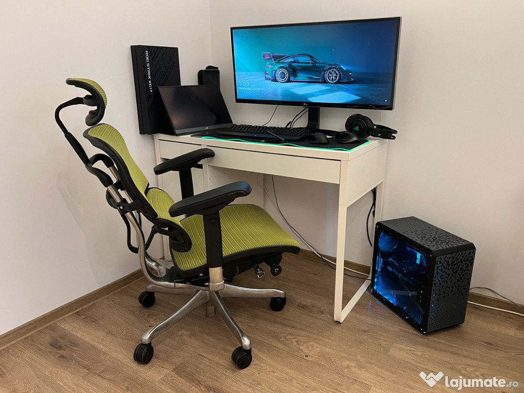 - Scaun: ERGOHuman Plus, cu reglaj spatar, sezut, lombar, manere si cap, foarte confortabil ( pret achizitie 5400 Ron ) verde sau negru ( care va place )