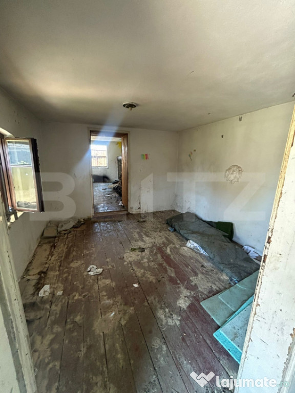 Blitz propune spre inchiriere casa cu teren mare , ideala pentru firme care au nevoie de depozitare si parcare. Casa trebuie renovata,nu este locuibila insa structura este foarte robusta din caramida si mansarda din lem, teren mare 3.233 mp, localizare excelentă, cu 18 m deschidere la strada principala,Utilități: apă, canalizare și curent electric în curte; gaze la stradă.