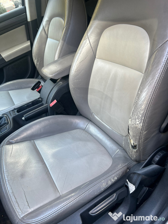 Interiorul este îmbrăcat în piele, dar, atenție, scaunul șoferului are un mic defect, iar ușa din dreapta este puțin lovită (așa am găsit-o în parcare).
