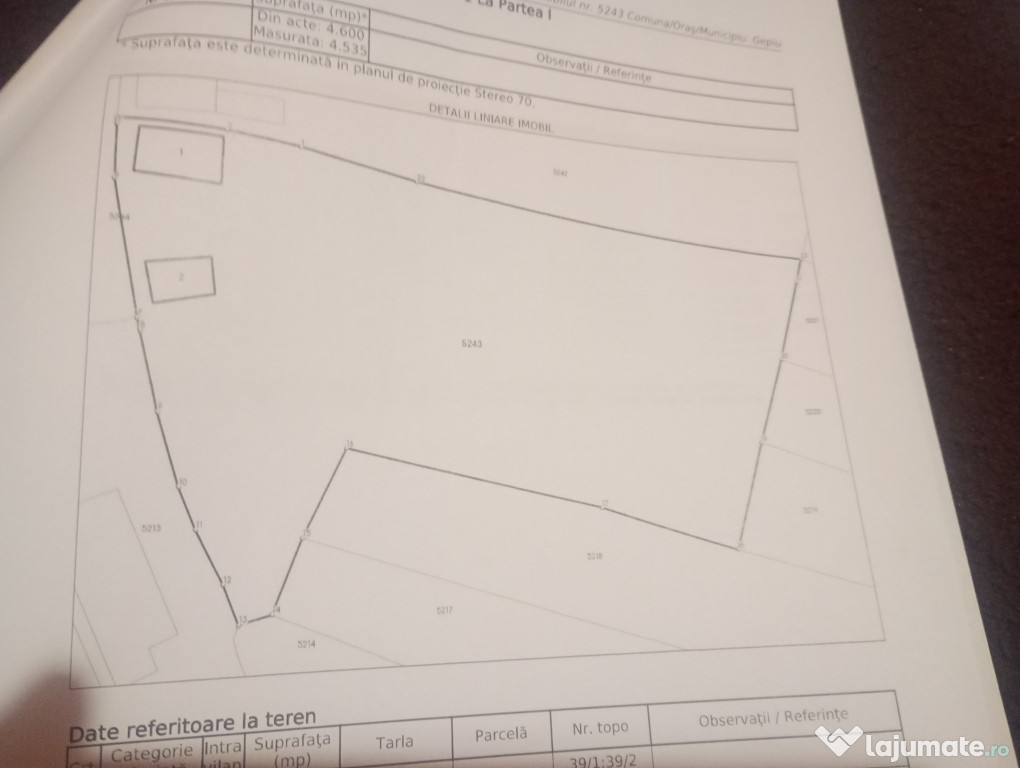 Vând teren intravilan de 4600 mp,cu doua case demolabile,cu curent,apa,canalizare și aprobat proiect pt introducerea gazului,drumul este asfaltat,zona liniștită în comuna Gepiu la 18 km de Oradea.