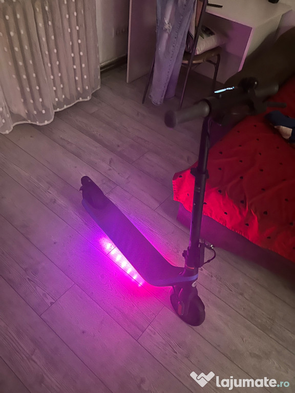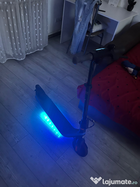 Vand trotineta electrica cumparata in aceasta vara cu 1500 lei.Trotineta este in stare foarte buna de functionare si estetic,a fost folosita foarte putin de un baietel de 8 ani,acesta este si motivul vanzarii,baietelul este prea mic pentru a continua sa umble cu ea.Marca trotinetei este Ninebot kickscooter C2 Pro.Trotineta are sub ea si leduri luminoase colorate,seara se vede frumos si mai are si boxa incorporata la care te poti conecta prin telefon si asculta muzica.Culoarea trotinetei este albastru.Viteza maxima a trotinetei este de 16 km/ora.Pretul este usor negociabil.O si dau la schimb cu o bicicleta corect evaluata ca si pret in raport cu trotineta ce o vand pentru copii de la 8 ani in sus