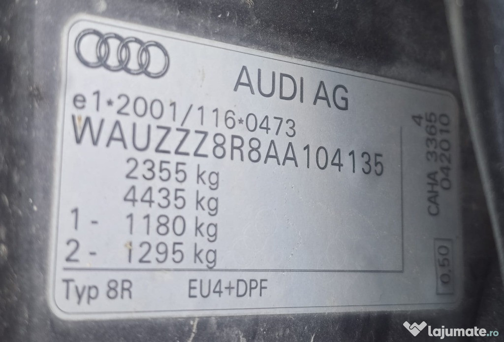 Vând un SUV AUDI Q5 cu următoarele caracteristici: - An fabricație 2010; E4 cu DPF; - VIN: WAUZZZ8R8A ...