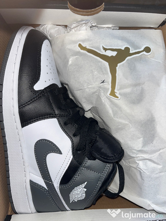 Jordani noi, unisex, nepurtati, versatili, culoarea lor de gri și negru asortându-se se perfect cu orice ținută pe care o aveți dumneavoastră. Mărimea 37,5. îi vând deoarece mi au venit cu 2 mărimi mai mici. Adidasii sunt comandați de pe site ul modivo, un site de încredere care nu vine produse fake, adidasii fiind originali și în stare impecabilă. Ei vin cu șireturile deja puse și cu stickerul Jordan. îi vând urgent deoarece vreau să îmi iau alții si termenul ar fi până pe data de 9, joi, dar și după. Plata se poate face prin transfer bancar, sau ramburs la curier. Prețul este negociabil. Pentru mai multe detalii nu ezitați să ma contactați la numărul ! Mulțumesc!Anuntul VÂND URGENT! Jordan 1 mid black iron gold este adaugat de pe LaJumate.ro.