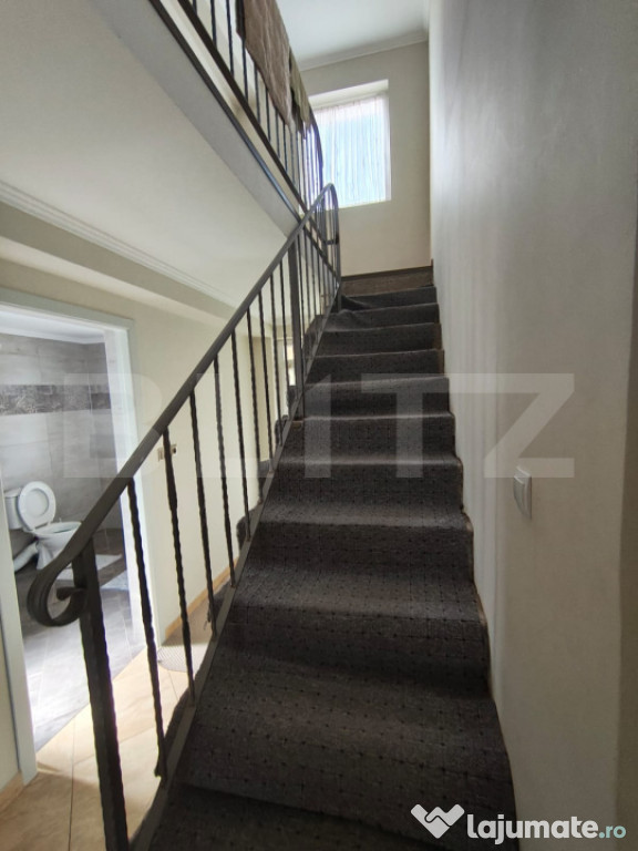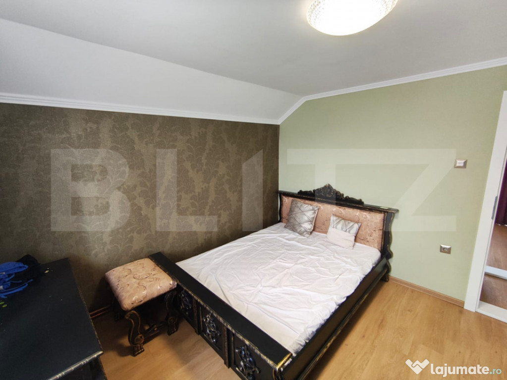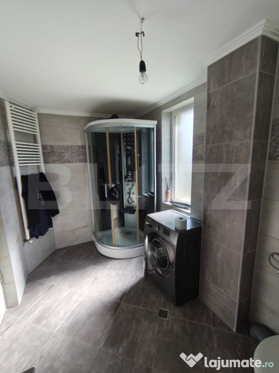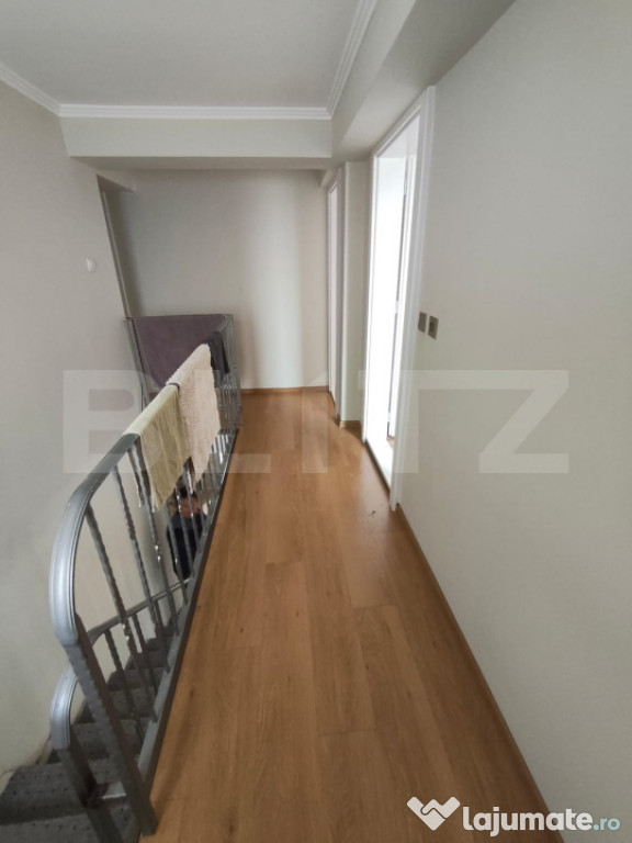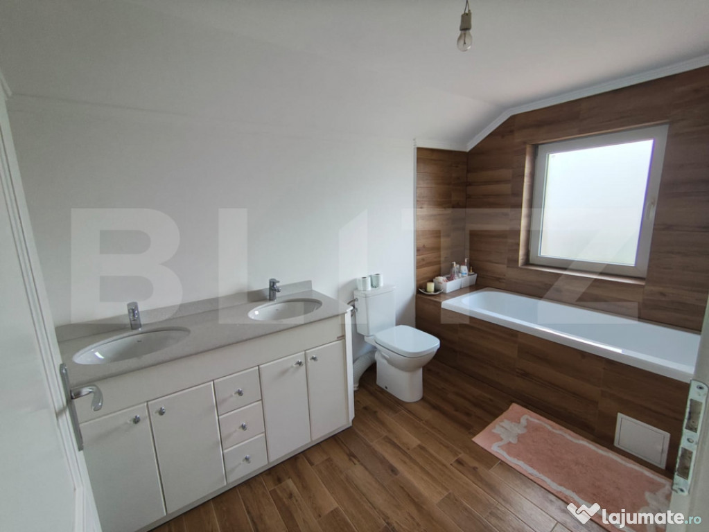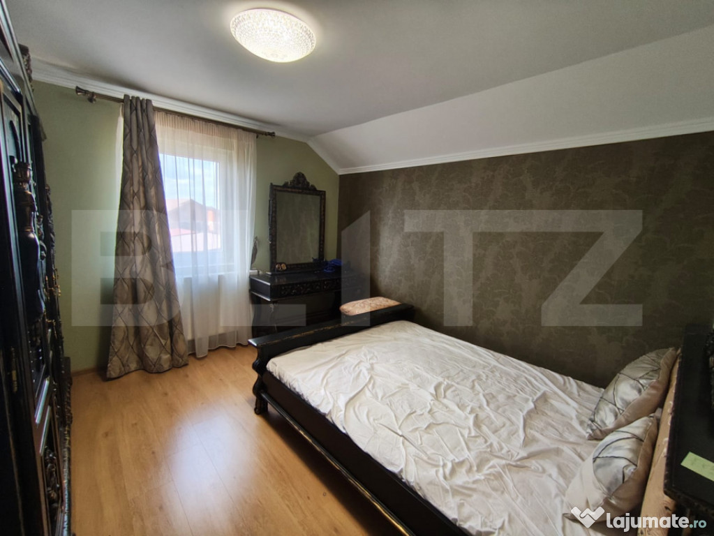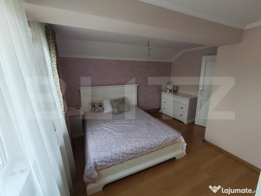 Va propunem spre vanzare casa cu design deosebit construita in anul 2017. Aceasta proprietate este amplasata pe un teren generos de 657 mp si este dispusa pe plan parter si mansarda. Casa se vinde finisata si mobilata la interior iar exterior semifinisata. Aceasta dispune de geamuri termopan, incalzirea se face cu centrala proprie pe gaz cu calorifere, izolatie exterioara cu polistiren de 10 cm. Construcția casei este din caramida poroterm, la exterior de 30 cm. Casa are 133 mp utili la parter + mansarda de 10mp balcon iar la parter 20 mp terasa. Parterul este compus din bucatarie open space, living cu loc de servit masa, baie cu cabina de dus, casa scarii, terasa acoperita si camera tehnica. Etajul este compus din 3 dormitoare, si o baie, 2 camere de la etaj au balcon. Scările de acces la etaj sunt din beton iar balustradele atât la scări cat și balconul interior sunt confecționate din fier forjat. Tot mobilierul din casă este făcut la comandă și de înaltă calitate (exclus canapele și paturi). Curtea are trotuare, perimetrale, acces auto iar gardurile sin din caramida si fier forjat la strada. spațiul verde Se poate pune la dispoziție toata documentația aferentă construcției, proiectul cu autorizația de construcție. Pentru alte informatii suplimentre sau vizionari va rugam contactati Blitz Imobiliare.Cod ofertă / ID BLITZ: P154250
