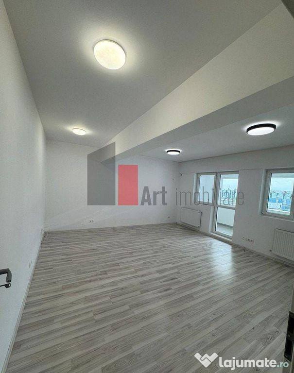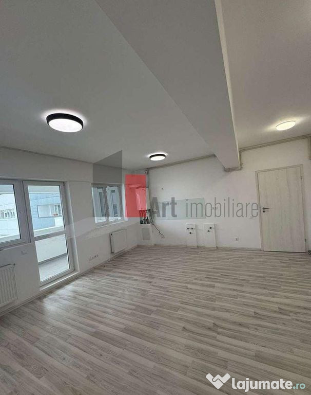 Apartamentul liber, nemobilat, are bucătărie deschisă.