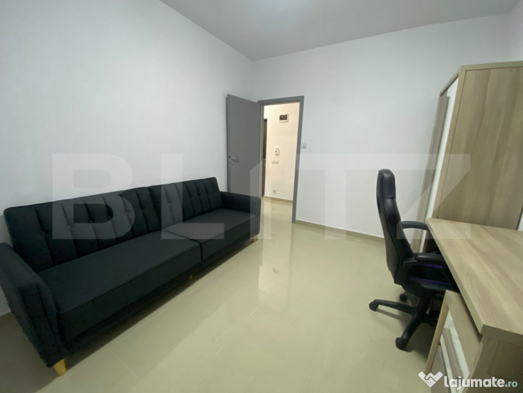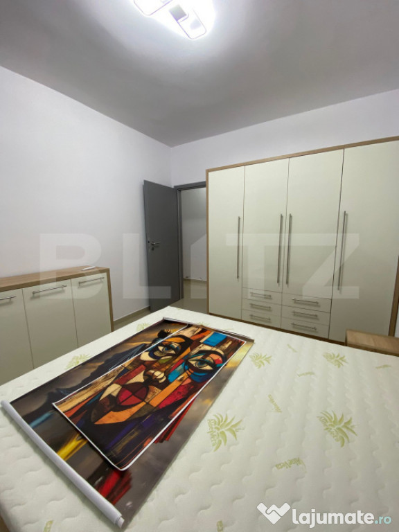 Blitz vă propune spre închiriere un apartament modern, complet mobilat, cu o suprafață de 65 mp.Apartamentul este luminos și bine compartimentat, ideal pentru o familie sau un cuplu, oferind un nivel ridicat de confort.