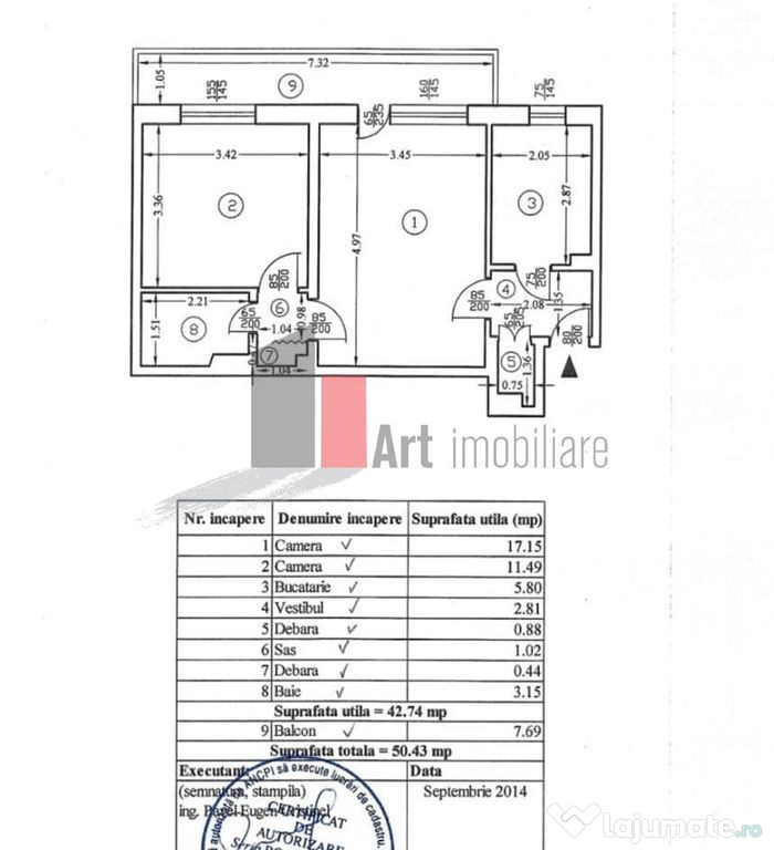 Suprafața utilă totală de 50,43 mp include și un balcon generos de 7,7 mp. Balconul este închis.